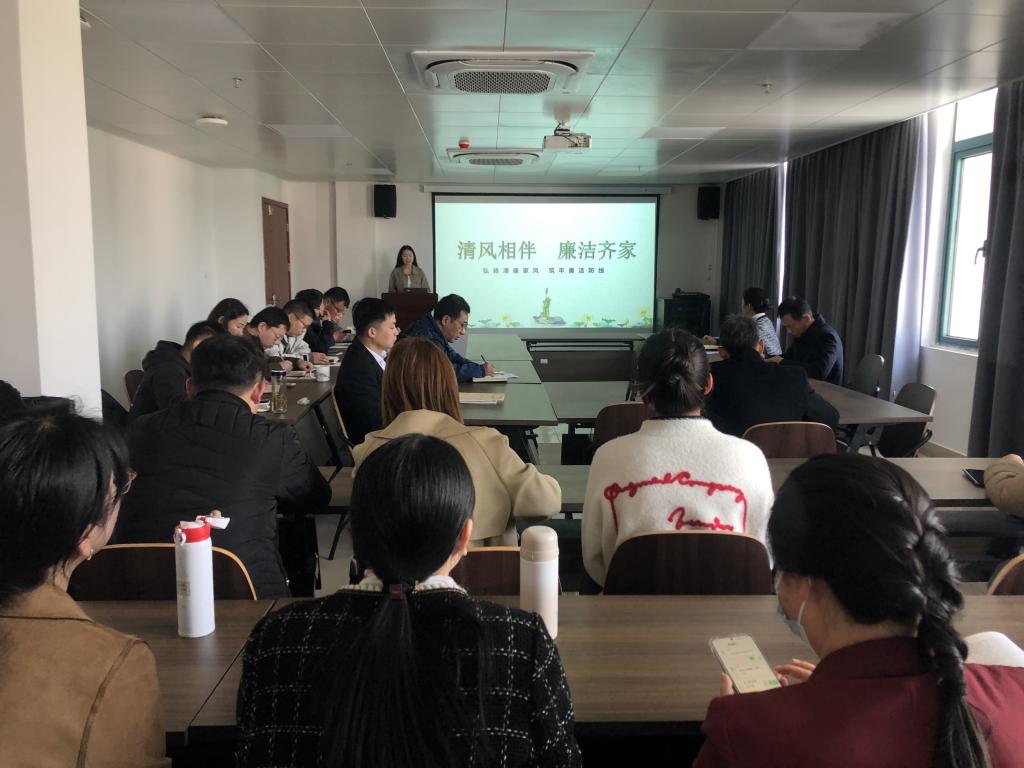 首先,与会教师集体学习习近平总书记重要文章《时刻保持解决大党独有难题的清醒和坚定,把党的伟大自我革命进行到底》。随后,万燕玲老师作了题为《清风相伴 廉洁齐家》的微讲座,阐述了家风、党风、社风之间的辩证统一关系。