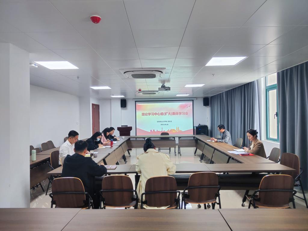 9月26日下午,马克思主义学院党总支在学术交流中心509会议室召开理论学习中心组(扩大)集体学习会议,学院党总支委员、支部书记、教研室主任、教学秘书、科研秘书等参加会议,会议由学院党总支副书记、副院长王晓明主持。