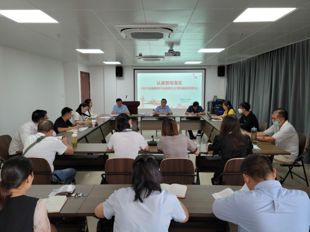 与会教师对《意见》要求进行热烈讨论,畅所欲言,各抒己见。周俊指出,要推动马克思主义学院内涵式发展,应发挥好学院作为宣讲阵地的功能,落实理论宣讲工作。王晓明指出,应以身作则,加快推进马克思主义学院作为二级学院科研管理机制的建设。邓然从青年教师的角度,提到学院对青年教师培养、培训工作的重视,并指出在接下来的工作中,要进一步深化对“课程思政”的理解和运用。姚鑫宇提出下一步的工作要求,即通过坚持守正创新:目标正、内容正、原则正;材料新、视角新、手段新,加快学院建设步伐。张坤从新进教师的角度,谈了自己入职以来的体会,并提出将加强自身在马克思主义理论研究方面的学习,提高思政课教学水平,通过做好本职工作为学院建设贡献力量。