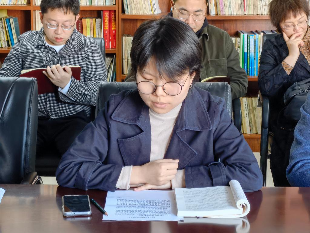 徐鑫容解读了勇于超越的开拓创新精神,她认为,勇于超越的开拓创新精神要求全体教师在贯彻思政课教学改革、开展人文科学研究、推广社会服务方面敢闯敢试、开拓创新,在参与学院建设方面坚持管理创新化、创新成果化。作为青年教师,要坚持教学方法与时俱进。用科学的理论武装学生,用生动的语言、鲜活的案例吸引学生。要及时更新教学内容。将党的创新理论最新成果、国家的大政方针、社会热点等内容,有机融入课堂教学中。