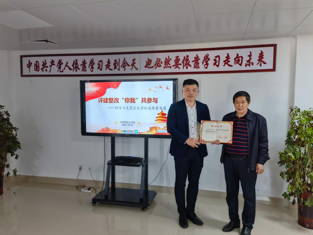 随后,进行了省级教学技能竞赛颁奖仪式,院长邱兴平为周俊、陈帅名颁奖。