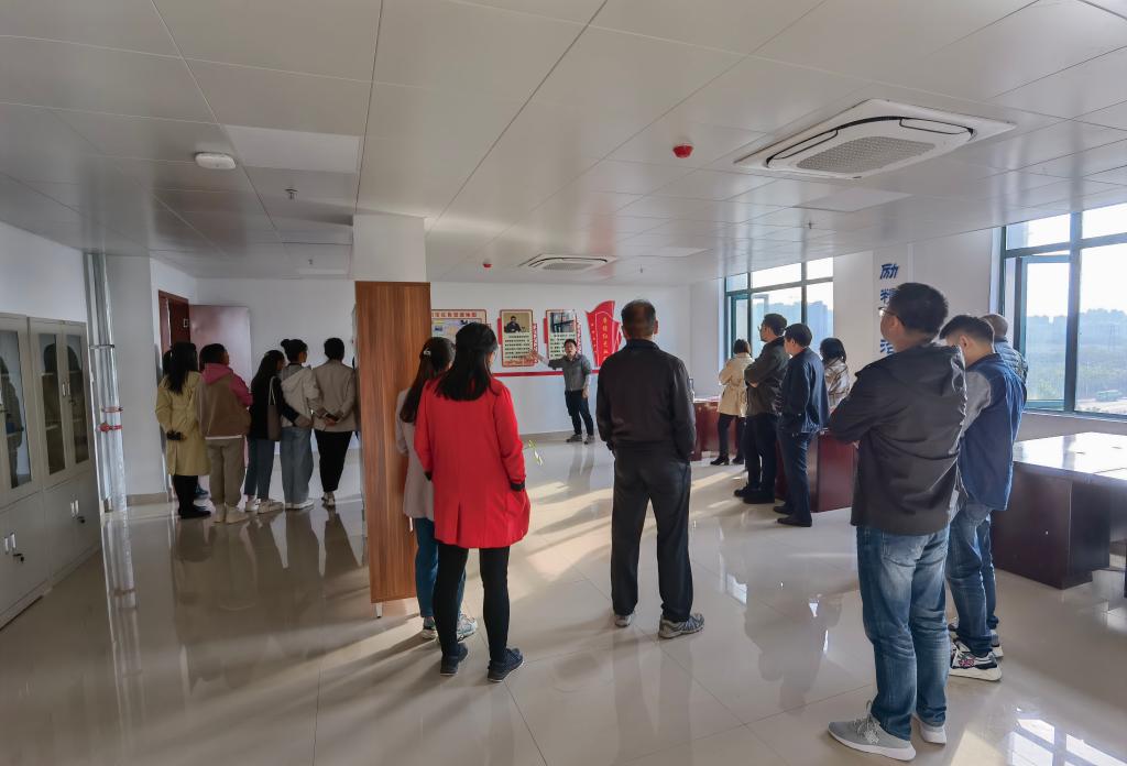 最后,邱兴平带领全体教师参观考察社会实践教学活动室,马腾骧就社会实践教学活动室文化墙设置和社会实践教学活动进行了介绍。(马克思主义学院)
