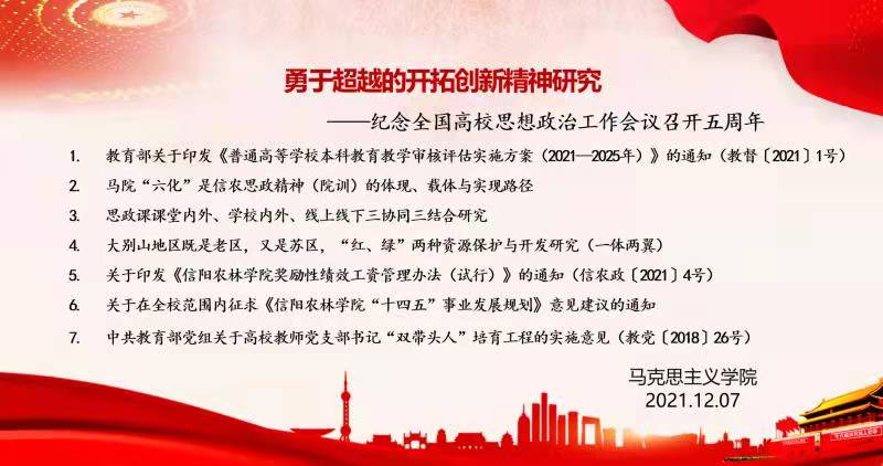 随后,邱兴平安排了全体教师学习教育部《普通高等学校本科教育教学审核评估实施方案(2021-2025年)》文件、学校《beat365在线平台官网奖励性绩效工资管理办法(试行)》等文件,布置了信农思政精神的载体与实现路径、大别山地区“红、绿”两种资源保护与开发研究等科学研究项目工作。