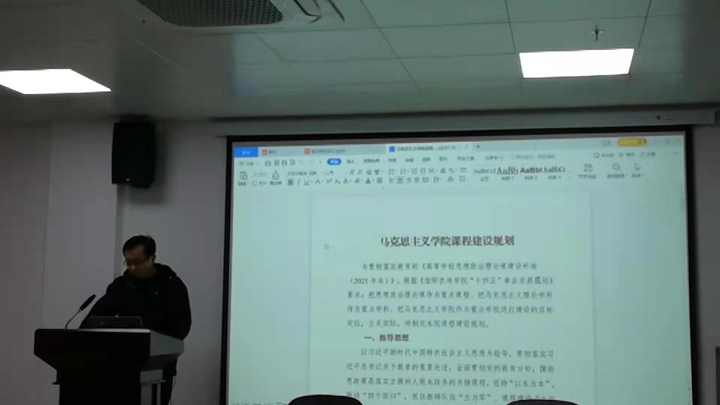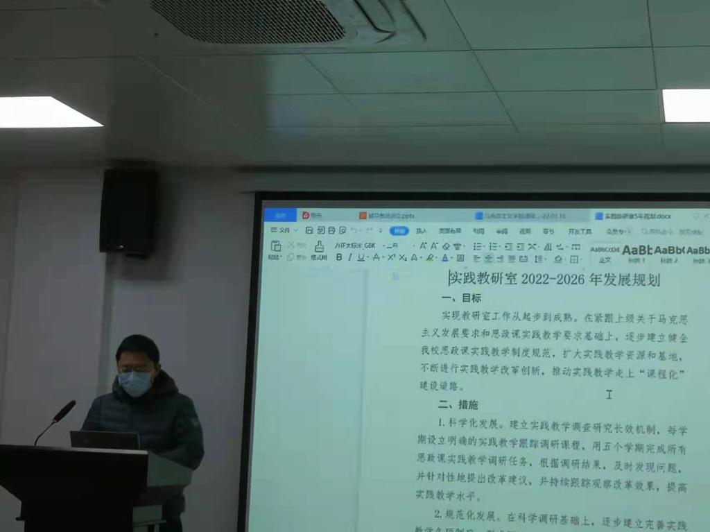 周俊做了《马克思主义学院课程建设规划》的汇报,王晓明做了《马克思主义学院师资队伍建设规划》的汇报,6位教研室主任分别汇报了教研室的“十四五”规划。参会人员对各项汇报材料进行研讨。