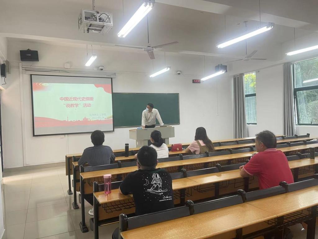 为贯彻落实学校“教学质量年”实施方案精神,开展应用型本科教育思想大学习大讨论大提升活动。引导教师更新教学理念、改进教学方法,发挥思政课课程的育人作用。5月24日下午,中国近现代史纲要教研室在2教108教室开展“说教学”活动。