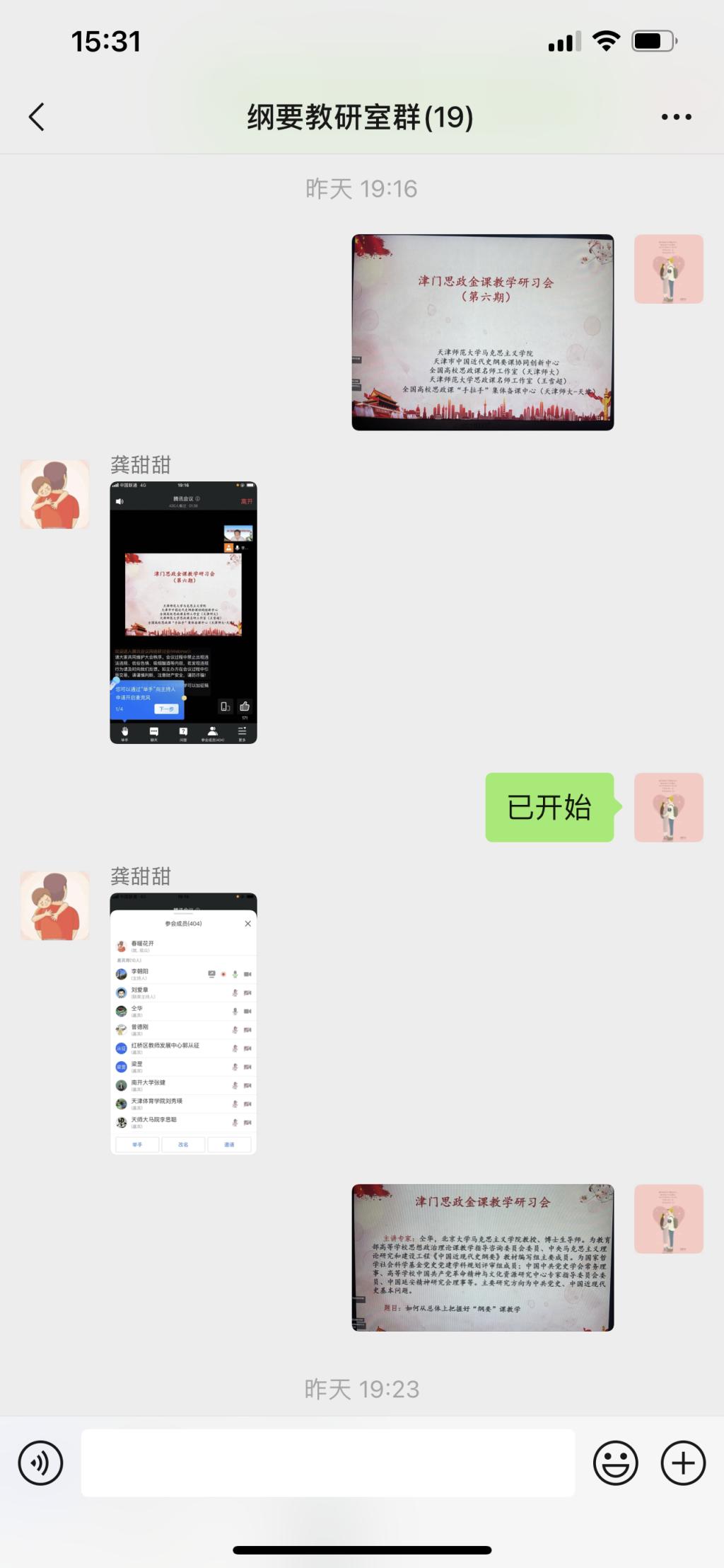 本次名师活动主要分为两部分,首先由北京大学马克思主义学院教授,博士生导师仝华作《如何从总体上把握好“纲要”课教学》的报告;其次由天津市红桥区教师发展中心高中思想政治教研员郭从征以:《中国特色社会主义进入新时代》为题进行展示;广西民族大学马克思主义学院副院长、副教授梁罡:《五四运动的历史特点》为题进行展示;天津体育学院马克思主义学院刘秀英副教授展示了:《为什么说中国战场是世界反法西斯战争的东方主战场?》;天津商业大学马克思主义学院讲师曾德刚展示了:《为什么历史和人民选择了中国共产党》;天津师范大学马克思主义学院副教授,硕士生导师李思聪:《历史和人民为什么选择社会主义道路》进行讲解;最后,南开大学马克思主义学院教授,博士生导师张健以《以大历史观深刻认识党的第三个历史决议的重大意义》进行讲解。“纲要”课教师参加了此次线上活动。活动结束后老师们纷纷表示很受启发,在教学上有了新思路、新方法,受益匪浅。