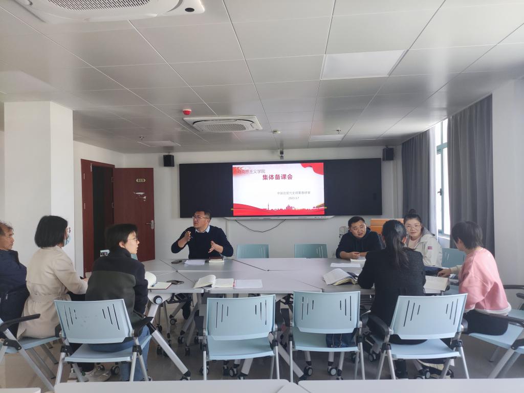 2023年3月7日下午,马克思主义学院中国近现代史纲要教研室在学术交流中心513智慧教室召开2023-2023学年第二学期第三次集体备课会,本次会议由教研室主任张坤主持,教研室全体专兼职教师参加。