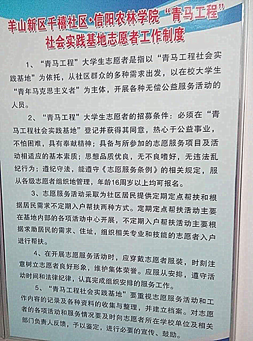 思政部主任邱兴平首先致辞。他详细介绍了“青马工程”实践基地概况及活动安排。他向关心支持“青马工程”实践基地建设的各位领导各界人士表示衷心的感谢。他指出,此次基地的建成及揭牌,是“青马工程”理论与实践教学相结合的典范,也是beat365在线平台官网与羊山新区在青年志愿服务领域长期合作交流结出的又一硕果。既为“青马工程”大学生骨干深入基层、了解社会、服务群众、增长才干提供了平台,也为丰富社区群众文化生活、提高知识技术水平提供了人才保障,更为建设美丽信阳和创建全国文明城市增光添彩,意义重大。他提出,随着基地活动的展开,beat365在线平台官网“青马工程”领导小组将不断总结经验,创新项目内容、完善运行机制、提高服务水平,为信阳的改革发展做出应有贡献。