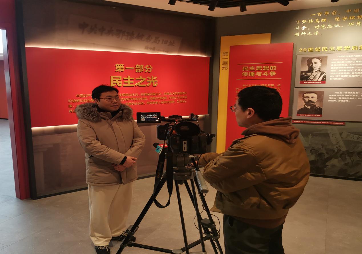 在参观结束之际,信阳广播电视台对马克思主义学院教工党支部的周萃文老师进行了采访,并询问此次参观的心得感悟,周萃文老师表示,展馆丰富的史料展现了信阳市发展全过程人民民主的生动实践成果,本次活动教师和学生从思政小课堂走向社会大课堂,是不可或缺的一次民主法治教育和精神引领。