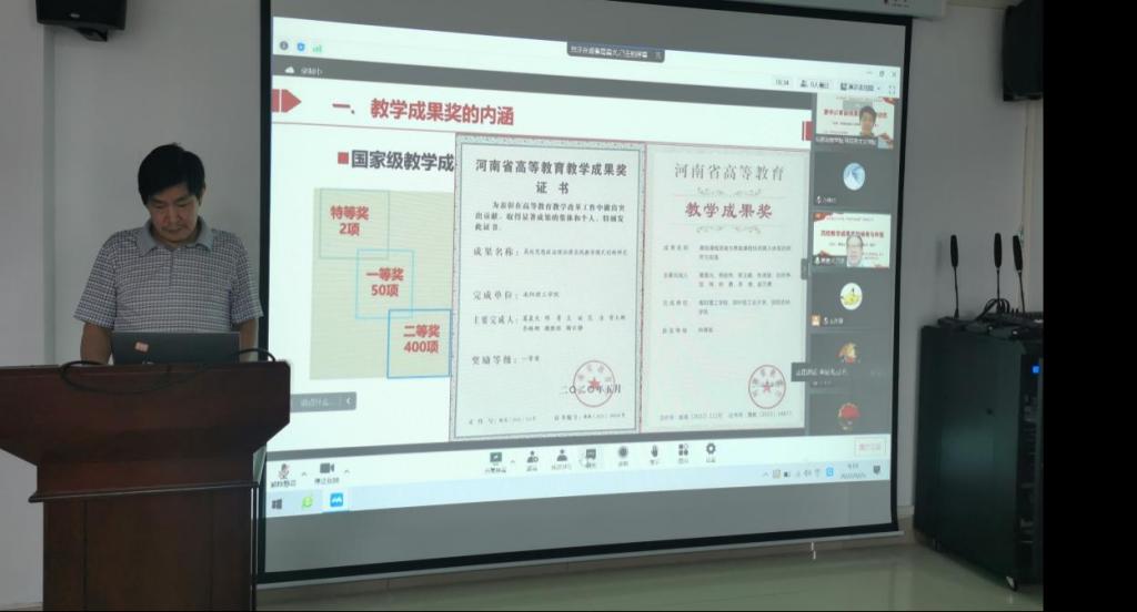 葛晨光教授结合自己申报和评审教学成果奖的体会,分享了教学成果申报经验,并从教学成果的内涵、教学成果的孵化、教学成果的总结、教学成果的申报和教学成果奖案例五个环节进行全方位解读,深入浅出、旁征博引、内容详实地讲解了应该如何申报课题、如何培育教学成果,并鼓励在场教师树立起提炼教学成果的积极意识,努力将教学成果申报工作谋到先处、做到实处、成到新处、写到要处、说到明处、整到全处,在工作中做好相关材料积累。