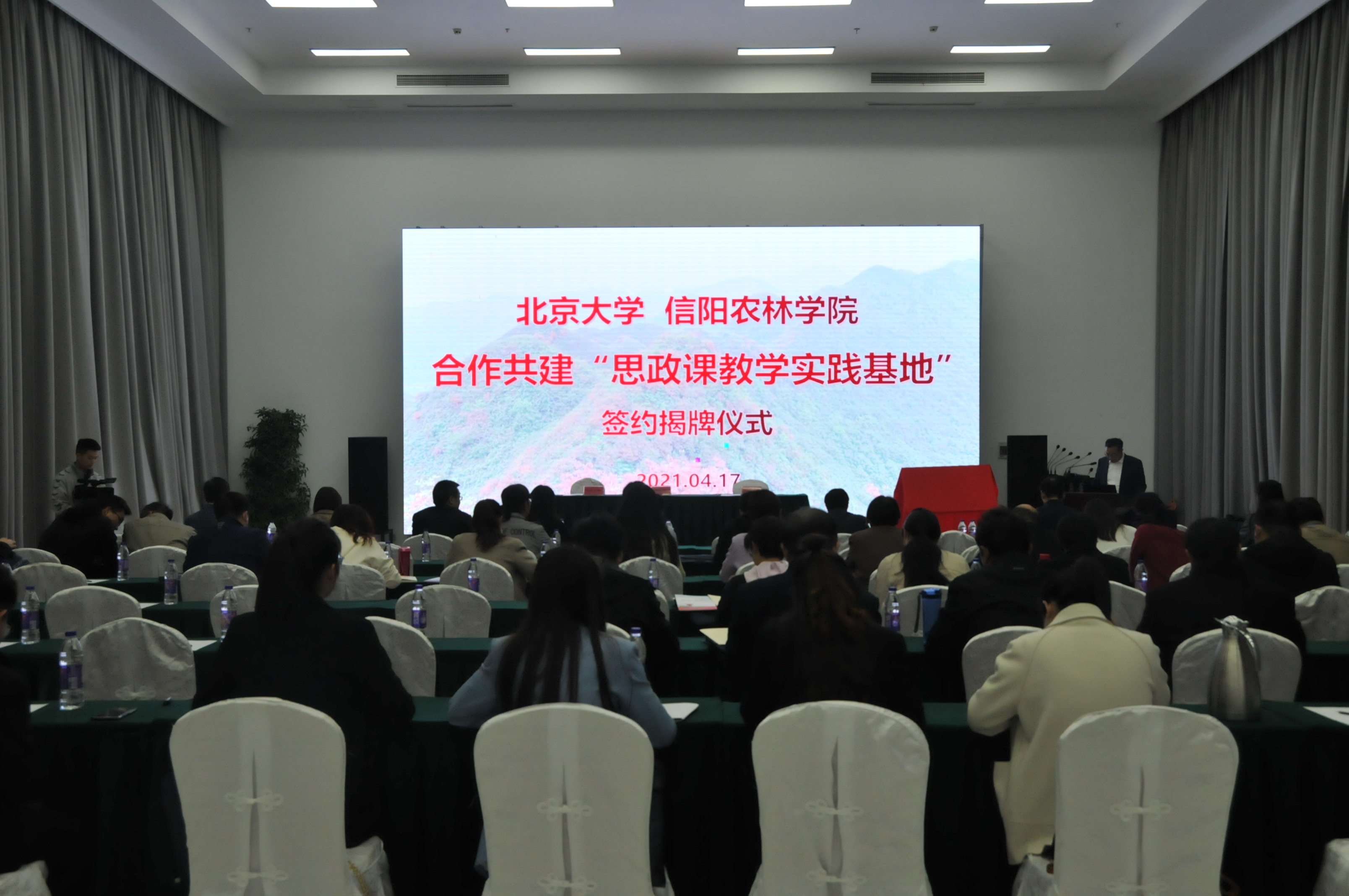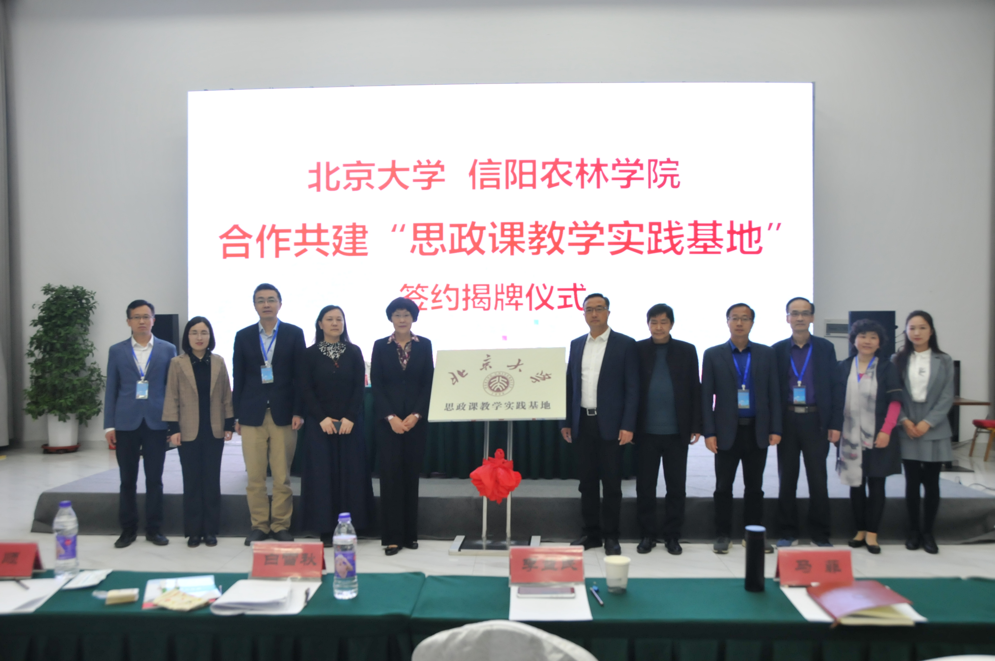 2021年4月17日,北京大学与beat365在线平台官网合作共建“思政课教学实践基地”签约揭牌仪式在信阳市新县成功举行。北京大学马克思主义学院原副院长白雪秋,beat365在线平台官网副校长李益民及两校部分教师代表出席仪式,仪式由beat365在线平台官网马克思主义学院院长邱兴平主持。