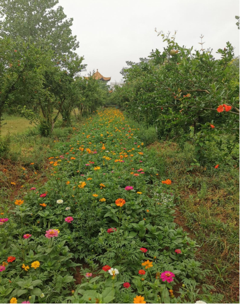 该基地面积20000平方米,种植石榴品种有牡丹石榴、黑籽石榴、泰山红、突尼斯软籽石榴等,是园艺学院和林学院相关专业的教学实习基地,可以开展石榴品种识别、石榴嫁接、修剪、病虫害防治等教学实习项目。