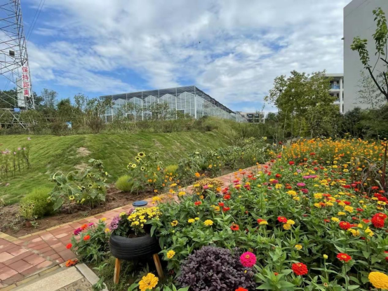 该基地占地8000平方米,融教学、科研和示范于一体,分为瓜果长廊、露地引种栽培、智慧温室和康养花园四个区域。承担学院30门专业课程的实践教学,可容纳300余名学生同时开展实习,为10个科研团队提供服务。