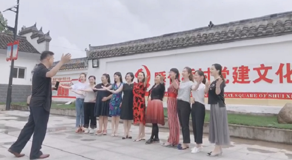 学习过廉政文化后,全体教师前往睡仙桥,在睡仙桥村党建文化广场进行文艺汇演,大家高唱《没有共产党就没有新中国》、《八月桂花遍地开》等红色歌曲,“没有共产党就没有新中国,没有共产党就没有新中国,共产党,辛劳为民族,共产党他一心救中国,他指给了人民解放的道路,他领导中国走向光明……”铿锵嘹亮的歌声回荡在广场上空。