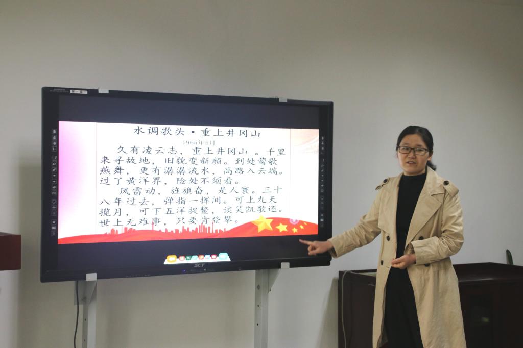 霍老师将《西江月 井冈山》这首毛主席经典诗词的创作背景娓娓道来,向大家介绍了井冈山——中国革命的摇篮。通过对黄洋界保卫战的介绍,老师们对井冈山“坚定信念、敢闯新路”的精神有了更深的理解。