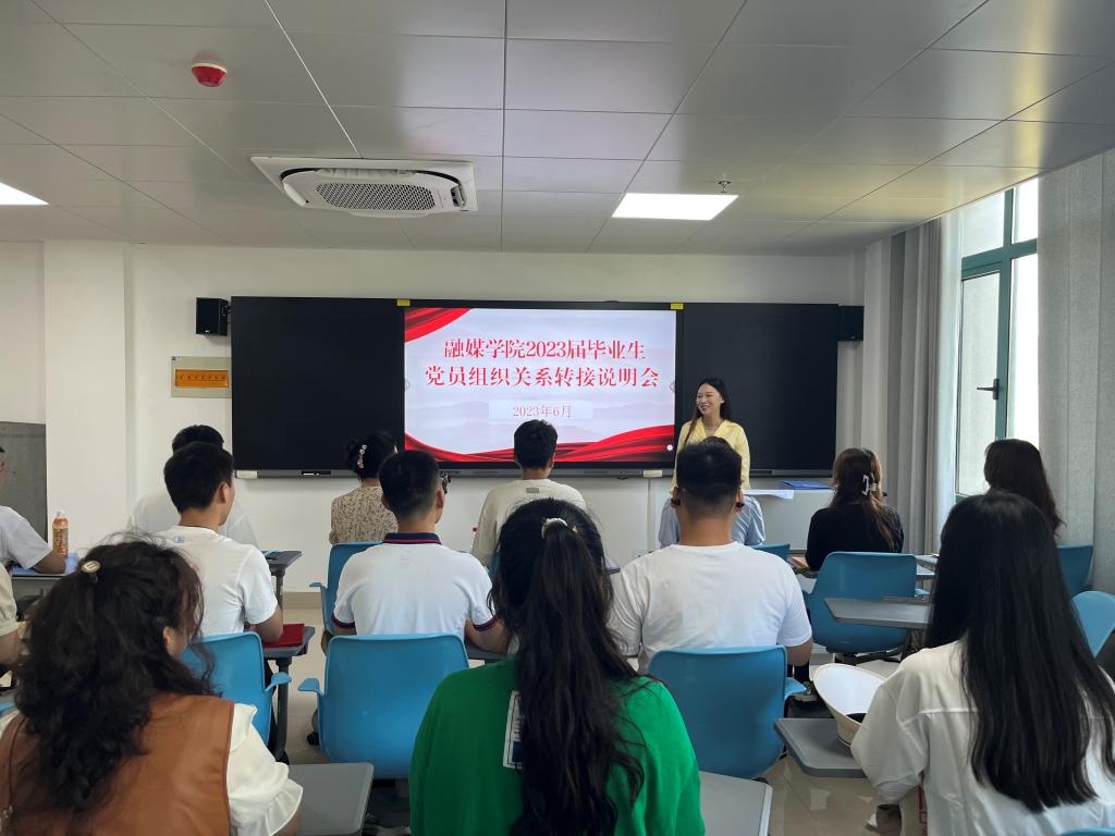 为保障毕业生党员组织关系顺利转接,融媒学院学生党支部于6月2日在学术交流中心409党员活动室,召开2023届毕业生党员组织关系转接说明会。本次说明会由院学生党支部书记郜若霖主持,党总支专职组织员赵展老师主讲,2023届全体毕业生党员同志参加。
