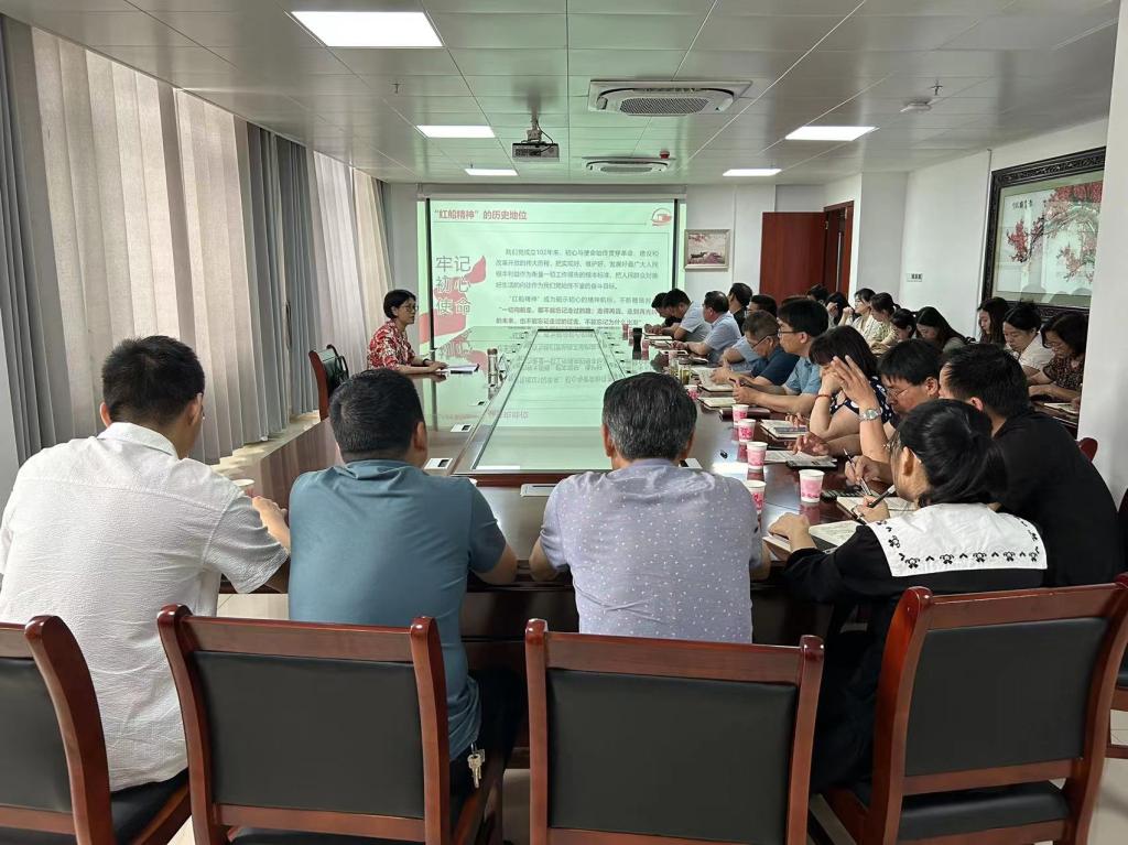 为深入学习贯彻习近平新时代中国特色社会主义思想,筑牢思想根基,强化理论武装,推动学习贯彻习近平新时代中国特色社会主义思想主题教育走深走实,6月21日上午,校党委委员、副校长王万玲以“弘扬红船精神 赓续红色基因”为题,在融媒学院马克思主义新闻思想研习室为校学生处、校招生就业处、校心理健康中心和融媒学院的全体党员干部上党课。
