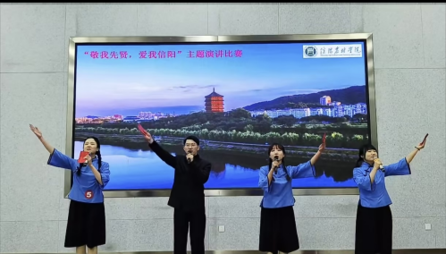 为深入探索和传承信阳先贤的优秀事迹,进一步弘扬大别山人文精神,11月29日下午,由我校党委宣传部和校工会联合主办,图书馆承办的“敬我先贤 爱我信阳”演讲比赛(教师组)决赛在学术交流中心一楼多功能厅举行,我院教师李晨雪、詹长运、杨洋、齐婧泽凭借出色的表现,以“高干子弟”为题荣获本次比赛特等奖。