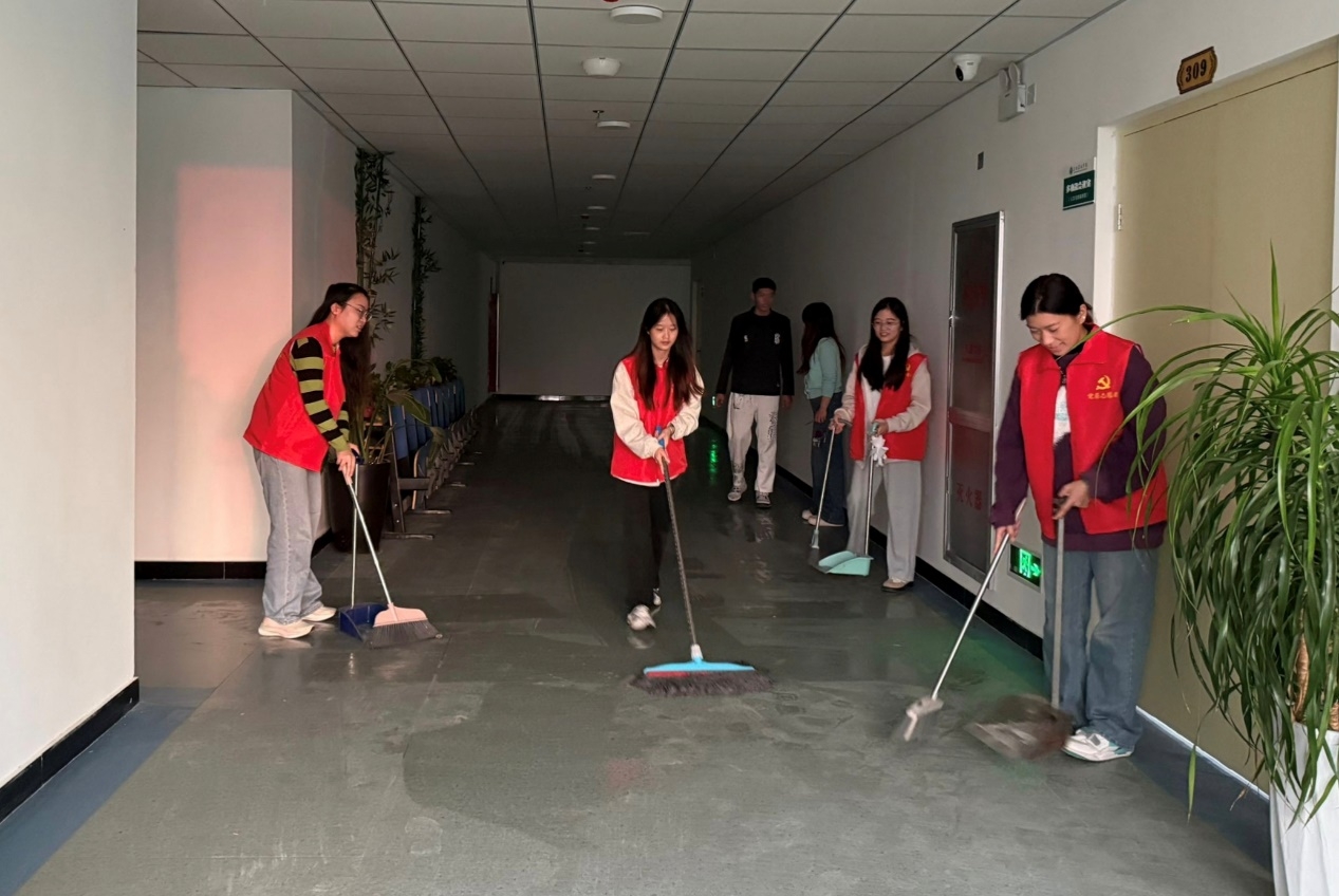 2024年10月29日下午,人文与传播学院学生党支部组织开展志愿服务主题党日活动,对学院美育实验室及公共区域进行清洁打扫,用实际行动践行党员的先锋模范作用,为师生营造一个更加整洁、舒适的学习和生活环境。