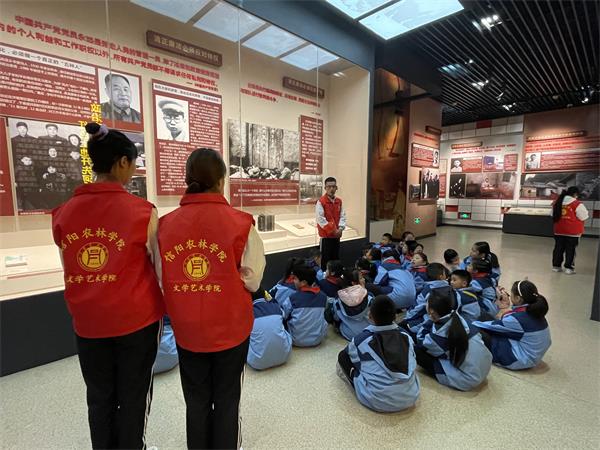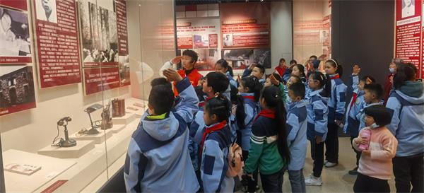 带着志愿服务的精神和青春活力,我院志愿服务队在学工组教师的带领下,赴鄂豫皖革命纪念馆开展志愿讲解活动。《真理的味道》《何大妈》《雪山忠魂》《一捆粉条严明军纪》《刘邓大军做棉衣》等八个鄂豫皖革命故事,在我院志愿讲解员们饱含深情的语调中娓娓道来。活动当天,恰逢某小学来到馆内进行爱国主义教育,一段段感人至深的故事带领现场的少先队员们重回烽火硝烟的革命战争年代,深刻感受革命先辈在革命年代为党、为人民无私奉献的崇高理想和坚定信念。在听完革命故事后,我院志愿者提议大家起身,郑重地用少先队礼向革命英烈致敬。
