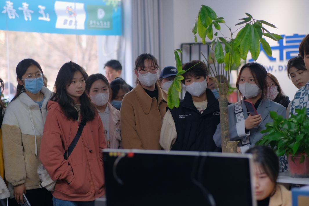 参观完信阳广电演播中心,同学们又来到了大信阳新媒体运营中心。为欢迎融媒学子的到来,该公司特地制作了标有“正青春 一起拼”字样的欢迎条幅,让同学们瞬间感受到了新媒体团队的青春和活力。运营中心负责人仲桑详细介绍了该中心的发展历程、人员构成情况、各新媒体岗位的主要职责和任务,带领大家参观了人才招聘工作室、新媒体工作室、电商直播间,并邀请同学们走进直播间,现场体验担任电商主播的真实感受。