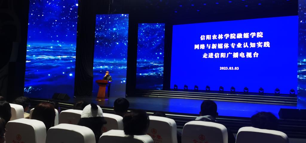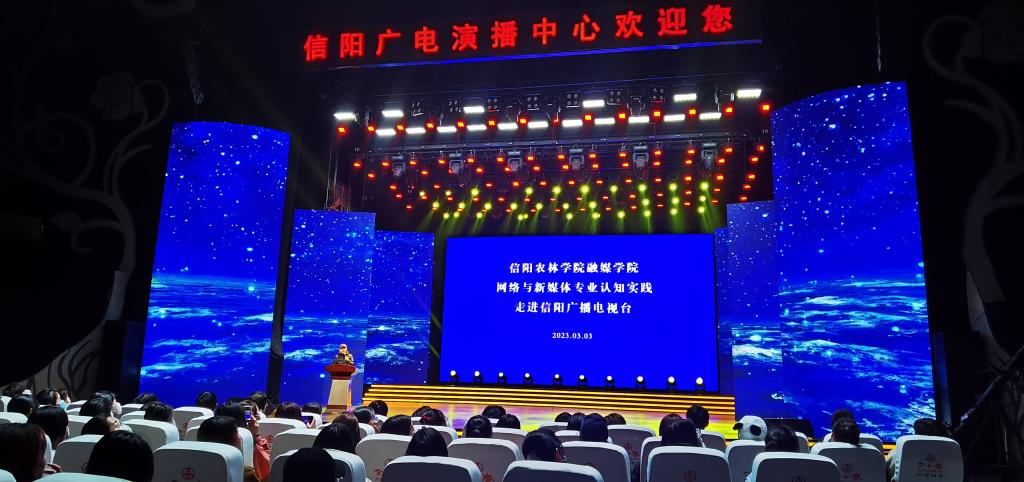 在信阳广播电视台演播中心,师生们通过现场观看融媒体作品《美好生活看信阳》,充分感受融媒技术赋能,给传统媒体创新发展带来的机遇和挑战。信阳广电演播中心主任吕晓东详细介绍了演播中心的主要功能和发展历程,分享了自己从事新闻工作39年来的难忘瞬间和感人故事。他用真实的经历勉励同学们要树立正确的新闻观,培养良好的职业素养,在学好专业知识的同时,加强团队协作能力、新闻实践能力,努力成为党的新闻事业需要的优秀人才。随后,师生有序参观了演播中心融媒体编辑机房、调度指挥中心、播控中心,对广播电视大型活动和专业节目的创作流程、制作环境等有了初步了解。