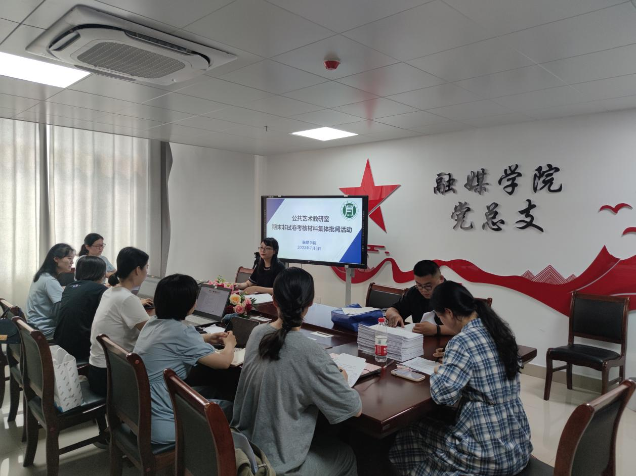 为进一步规范非试卷评阅工作,加强非试卷考试阅卷管理,提高公共艺术教研室非试卷批改质量,7月3日下午,公共艺术教研室召开了期末非试卷考核材料集体批阅活动,公共艺术教研室专、兼职教师参加会议。活动由公共艺术教研室副主任熊潇滢主持。