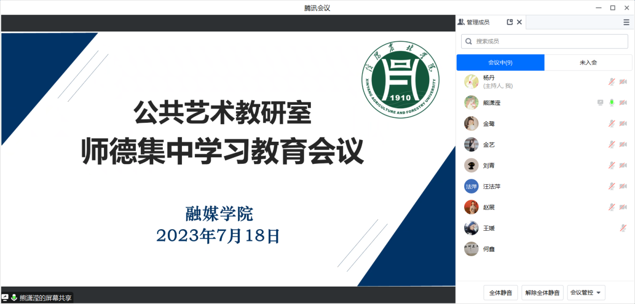 为深入学习贯彻习近平新时代中国特色社会主义思想,贯通学习习近平总书记关于教育的重要论述和指示批示精神,加强新形势下师德师风建设,筑牢广大教师为党育人、为国育才初心使命,根据校人事处《关于开展师德集中学习教育活动的通知》工作安排、融媒学院党总支师德集中学习教育工作方案,7月18日下午,公共艺术教研室召开了师德集中学习教育会议,公共艺术教研室全体教师参加会议。会议由公共艺术教研室副主任熊潇滢主持。