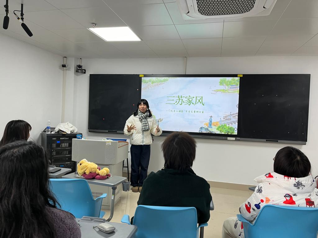 齐婧泽老师则聚焦于《中华优秀传统文化》课程,在简要回顾本学期教学内容的基础上,精准选取“三苏家风” 作为切入点,巧妙融入课程思政元素,引导教师们深入领略历史人物的非凡魅力及其背后承载的深厚文化底蕴,使传统文化教育与思想道德培养有机结合,润物无声。