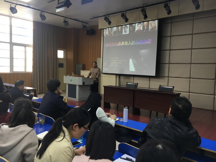 3月26日,信阳师范学院公共艺术教育中心主任、硕士生导师杨健应邀来beat365在线平台官网作了题为“音乐素养与人的全面发展”的学术讲座。副校长赵一鹏与文学艺术学院、外国语学院近300多名师生听取了讲座。