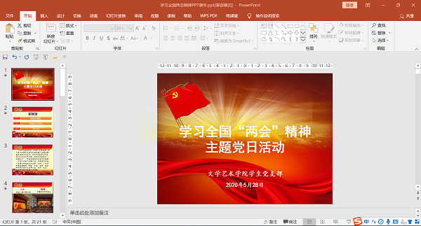 文学艺术学院学生党支部开展“深入学习2020年全国‘两会’精神”主题党日活动