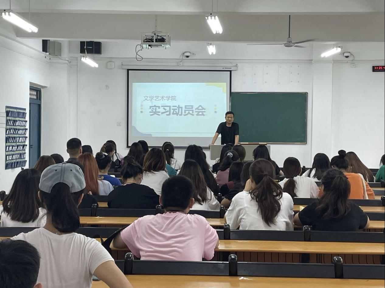 7月6日,文学艺术学院在二教112教室召开实习动员会。副院长何鑫出席会议并讲话,文秘专业19级全体学生参加会议。