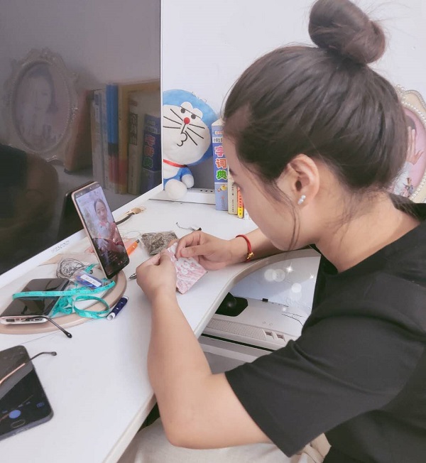 我院提前把制作香囊和彩绳的基本材料和工具邮寄给了学生,同学们在直播过程中跟随赵展老师一起绣香囊,编织五彩绳,整个直播活动非常有趣,积极互动,气氛活跃,中间穿插着赵展老师的即兴演唱,《我和我的祖国》等歌曲,用崭新的方式弘扬和传承传统文化,增强了同学们爱国意识,提高大家的文化认同感,以文化创新塑造持久而深沉的文化自信。