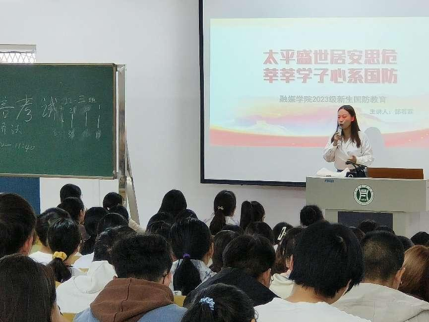 为增强新生关心国防、热爱国防、建设国防、保卫国防意识,培育爱国情怀,激发拥军爱国热情,9月13日,融媒学院在2教204教室开展“太平盛世居安思危,莘莘学子心系国防”国防教育,融媒学院2023级全体学生参加。
