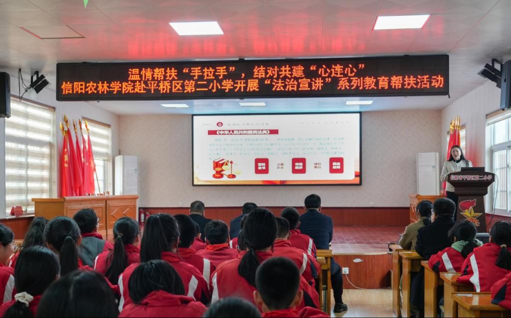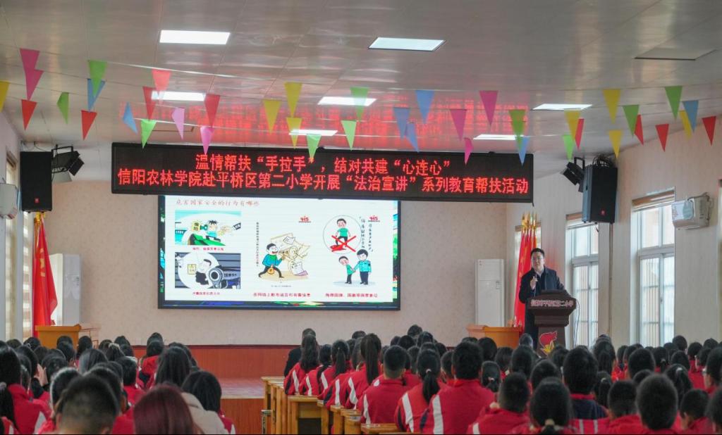 温情帮扶“手拉手”,结对共建“心连心”——beat365在线平台官网赴信阳市平桥区第二小学开展“法治宣讲”系列教育帮扶活动