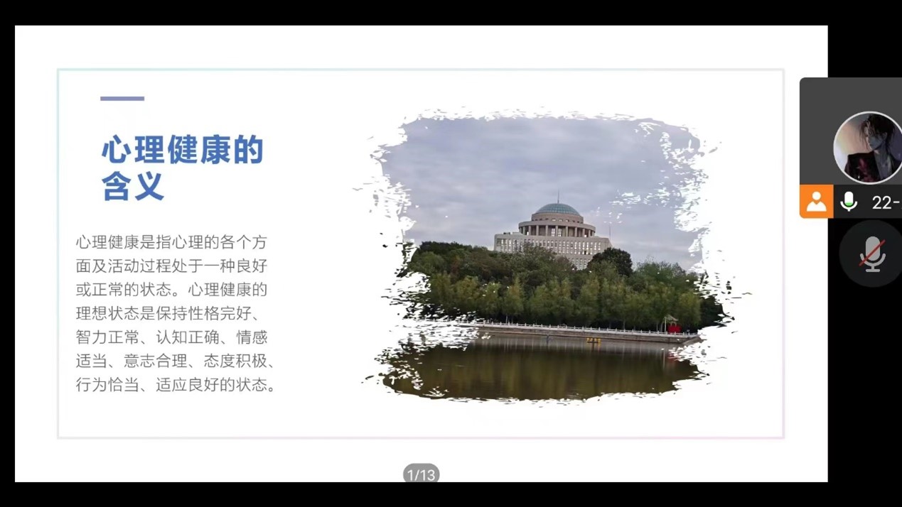 初入大学同学们还处在一个过渡阶段,对于生活环境和学习环境的变化会有一定的不适应,心理健康部以此为切入点面向全体同学开展了此次心理班会。本次线上班会主要从心理健康的定义入手,带领同学们由浅入深的正视心理健康。并通过一些有趣的心理健康测试和心理健康小故事来帮助同学们加深对于自身的认识。