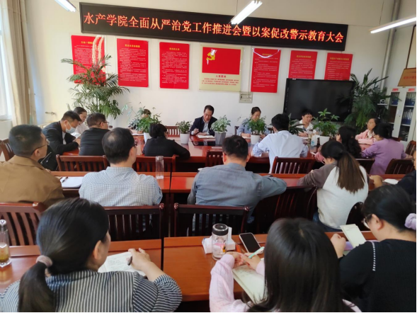 10月17日下午,水产学院党总支在2C330会议室召开全面从严治党工作推进会暨以案促改警示教育大会,水产学院全体教职工参加会议。会议由水产学院党总支副书记黄光玲主持。