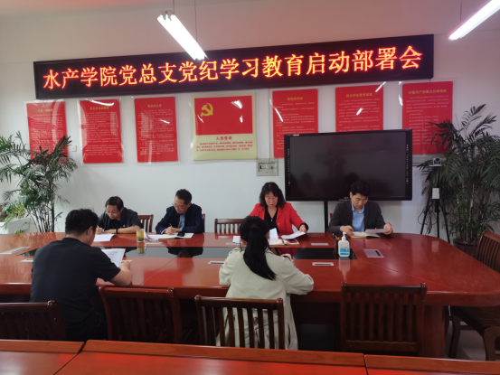 4月16日下午,水产学院党总支召开党纪学习教育启动部署会。学院领导班子成员、各党支部书记参加会议。会议由党总支书记黄光玲主持。