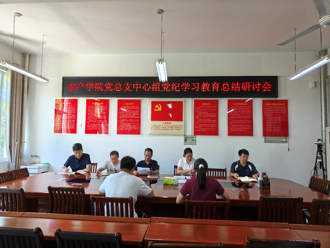 7月30日下午,水产学院党总支在院党员活动室召开党纪学习教育总结研讨会,就党纪学习教育以来的工作进行总结交流。学院党总支书记黄光玲同志主持会议,学院理论学习中心组成员、党纪学习教育小组成员参加会议。