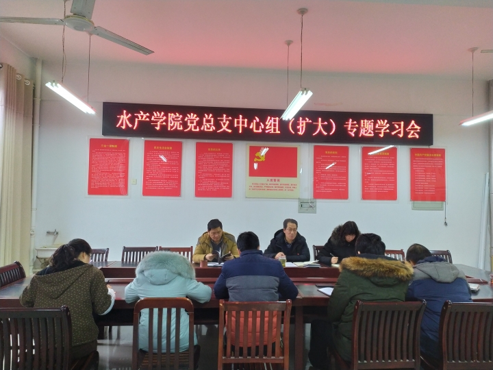 1月10日上午9点,水产学院党总支在党员活动室召开中心组(扩大)专题学习会。水产学院党总支委员、各支部书记参加了会议。会议由水产学院党总支书记郭旭升同志主持。