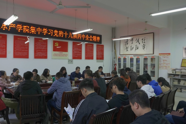 根据学校《关于认真学习贯彻党的十九届四中全会精神的通知》文件要求,11月5日下午,水产学院在会议室召开了党的十九届四中全会精神专题学习会。会议由水产学院党总支书记郭旭升主持。水产学院全体教职工和学生党员参加了本次学习会。
