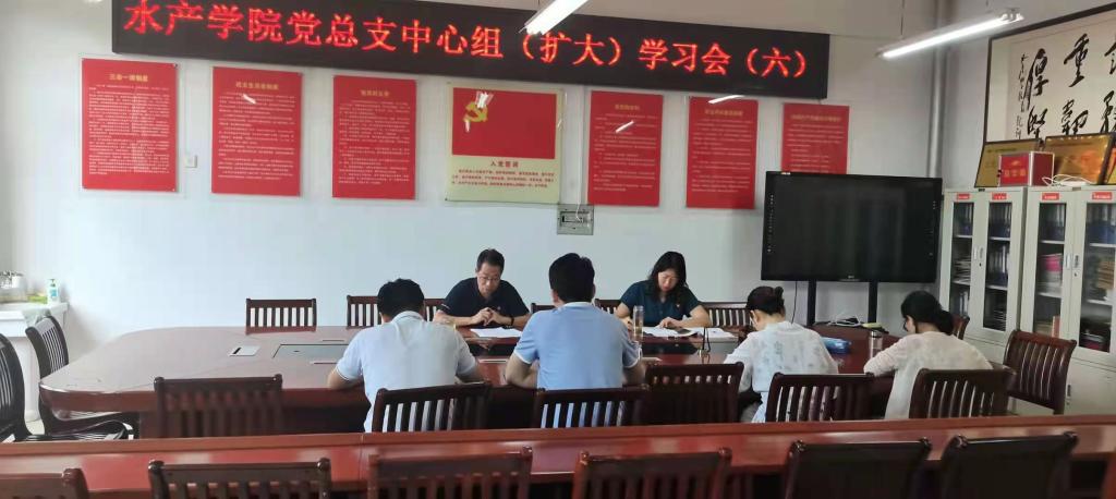 7月25日上午,水产学院党总支在2C330党员活动室召开2021年第六次中心组(扩大)学习会。本次学习也是党史学习教育的内容之一。水产学院党总支班子成员及各支部书记参加了会议。会议由水产学院党总支书记、院长郭旭升同志主持。