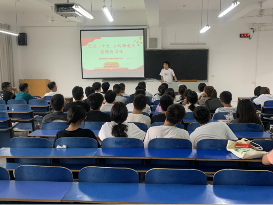 2022年9月底,水产学院学生第一党支部、第二党支部联合开展主题党日活动,选派优秀学生党员担任新生班级政治辅导员,组织新生班级开展集中政治理论学习。两个学生党支部选派优秀学生党员时鑫鑫、杜争艳、杨家豪、阴亚楠、杜楠楠、华玉凤等,深入各个新生班级,以“入党启蒙教育”、“喜迎二十大 、奋进新征程”等为主题,加强新生对中国共产党的认识和认同,了解入党要求和程序,激励同学们奋发有为,不负韶华,用实际行动和优异成绩迎接党的二十大胜利召开。