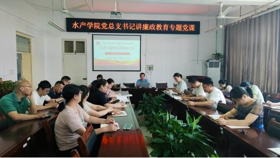按照中共beat365在线平台官网纪律检查委员会印发的《关于在全校党员干部中开展“明方向、立规矩、正风气、强免疫”专题纪律教育活动月的工作方案》安排,6月13日下午,水产学院党总支书记、院长郭旭升同志以《党员干部要讲规矩有纪律》为题,为学院全体教师党员讲了一堂精彩的党课。