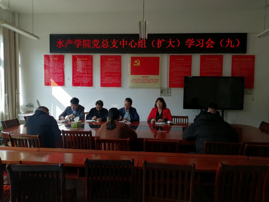 10月29日,水产学院党总支召开理论学习中心组(扩大)会议。会议由水产学院党总支书记黄光玲同志主持。水产学院党总支委员、各支部书记参加会议。