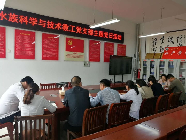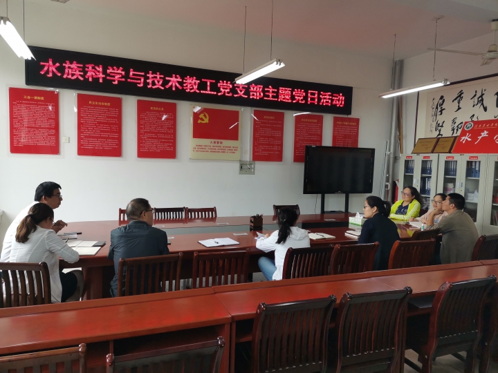 9月29日中午,水族科学与技术教工党支部在学院党员活动室2C330开展主题党日活动。水族科学与技术教工党支部全体党员同志参加了会议,会议由支部书记孟瑾主持。