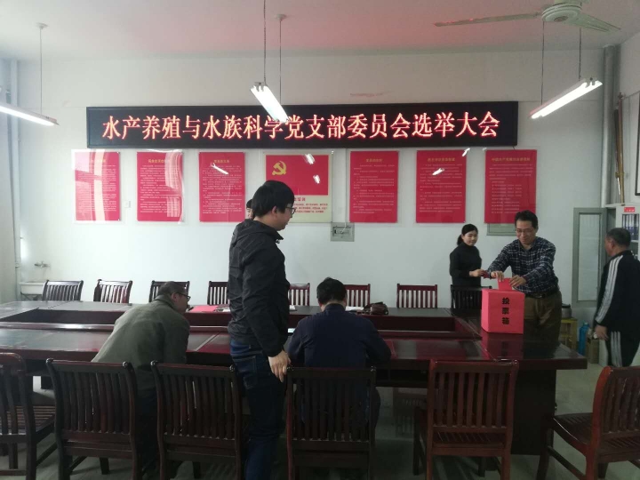 大会在庄严的《国歌》声中正式开始。按照相关规定,大会表决通过了选举办法、监票人及计票人名单,并进行了支部委员选举。经过大会选举,冯德祥、伦峰、黄荣静三位同志当选为水产养殖与水族科学党支部第一届支委委员,刘开放、孟瑾、雷宇杰三位同志当选为水产病害与资源环境党支部第一届支委委员。大会在雄壮的《国际歌》声中圆满结束。