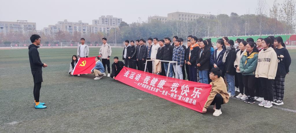 11月20日中午,水产学院学生党支部在操场开展了“一党员一特色”第14期活动,本次活动是学生党员学党史、办实事的生动体现。活动由学生党员张辉、张宇航主持,以“我运动 我健康 我快乐”为主题,开展了一场新老生足球友谊赛。学生党支部全体成员和水产学院新一届学生会同学参与了此次活动。张辉、张宇航是学院足球队的成员,擅长体育运动,曾在校运动会上取得良好成绩。他们从自身经验出发,从运动准备、运动的好处、疫情防控期间运动的重要性、健康饮食等方面进行了讲解,鼓励同学们积极参加体育锻炼,强健体魄,快乐生活。友谊赛前,他们还认真讲解了足球比赛的基本规则,带领大家做了充分的热身准备活动。同学们在这场足球友谊赛中体会到了运动的快乐,增加了同学情谊。,