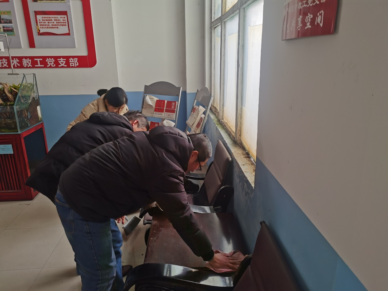 活动中,支部党员教师们拿着清扫工具,积极投身到清理工作中,认真对支部共享空间和学院公共设施等卫生死角进行了打扫清理。大家不怕苦、不怕累,相互协作,经过不懈努力,环境面貌焕然一新。整个活动现场,大家积极发扬奉献精神,个个奋力争先,忙碌的身影构成了一道靓丽的风景线。