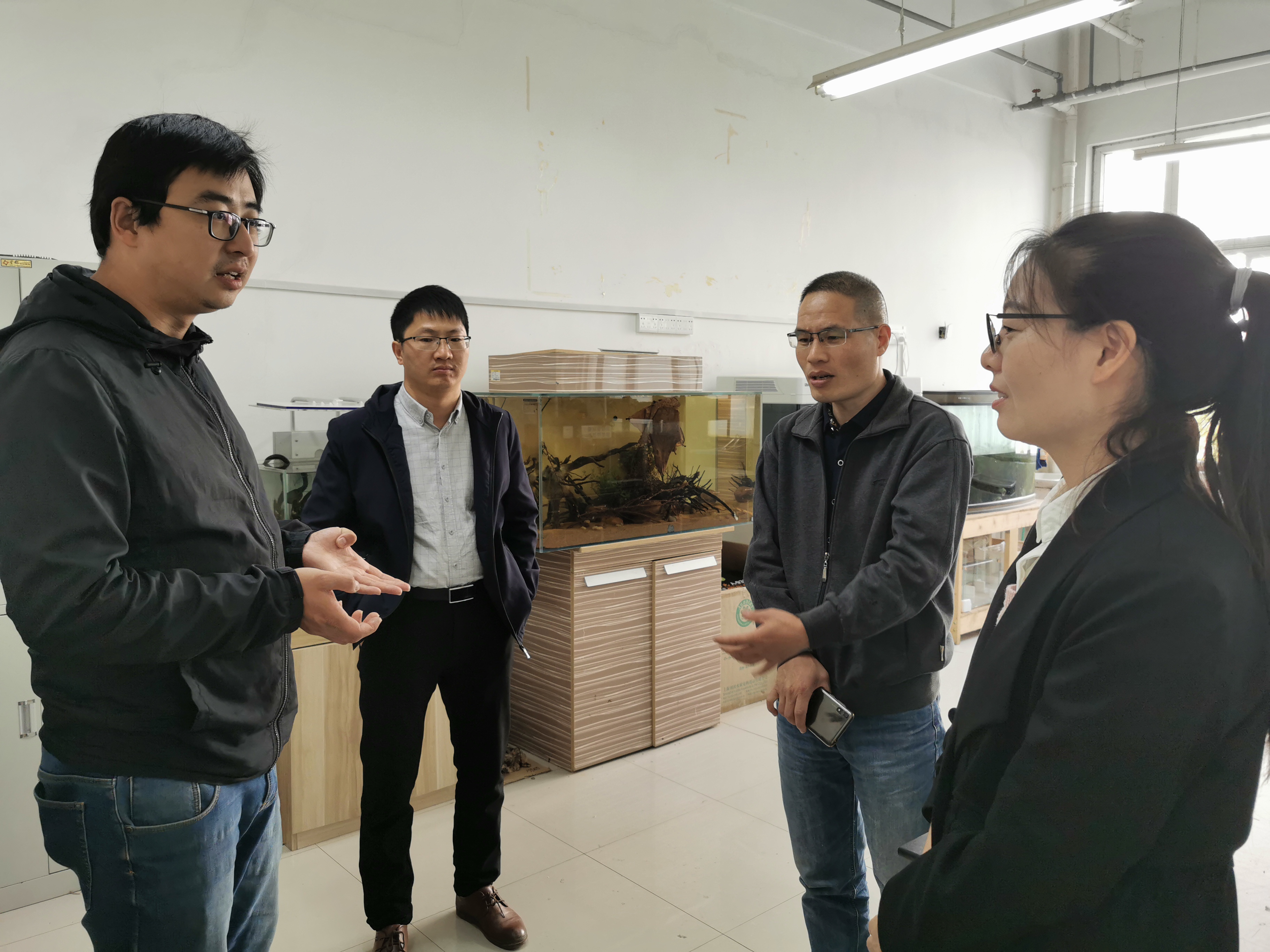 学术报告后,张春暖副教授在水产学院老师的陪同下参观了水产学院的实验室。张老师对水产学院的观赏鱼实验室以及水族造景实验室很感兴趣,表示希望能够加强我院水族科学与技术专业与河南科技大学水族科学与技术专业的交流与合作。(水产学院 田媛)